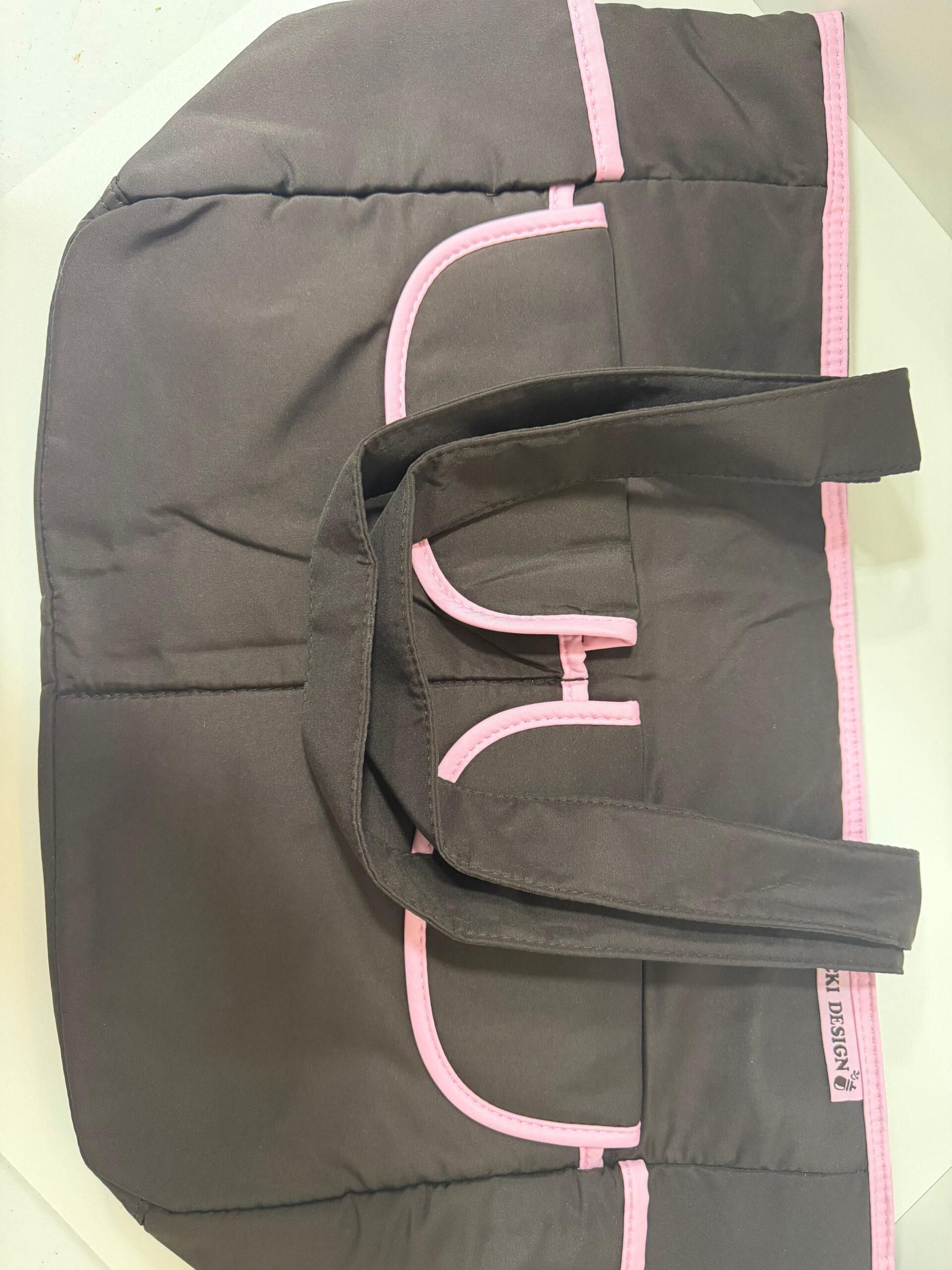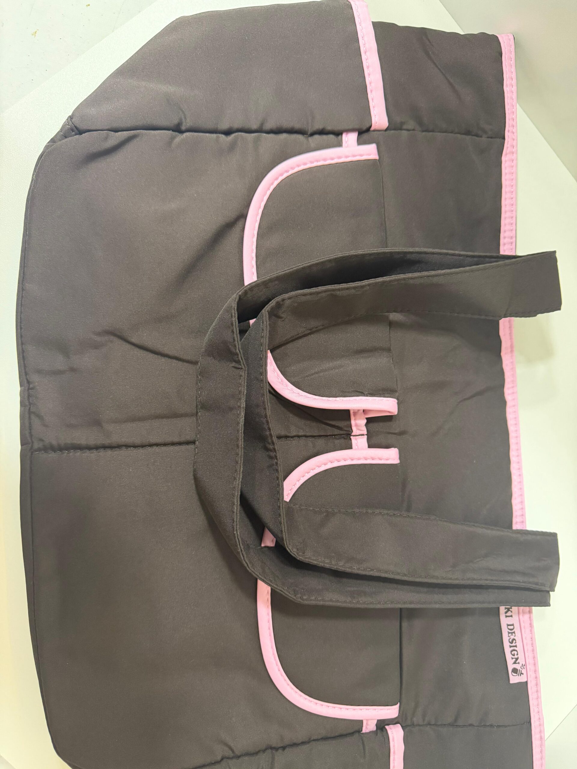 Bolsa maternidade em tom preto com acabamento em rosa claro, prática e super funcional para o dia a dia.