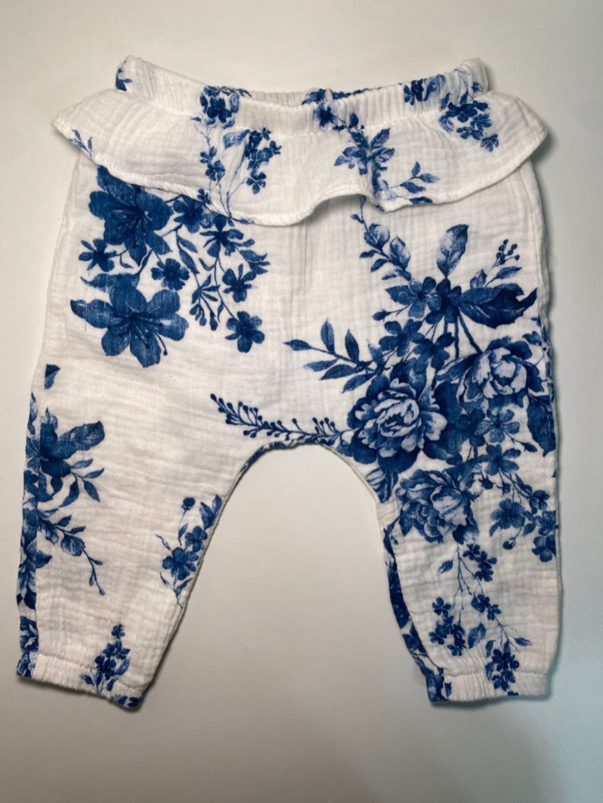 Peça charmosa e super delicada, calça em tecido leve com estampa floral azul, trazendo um visual clássico e elegante para as pequenas.