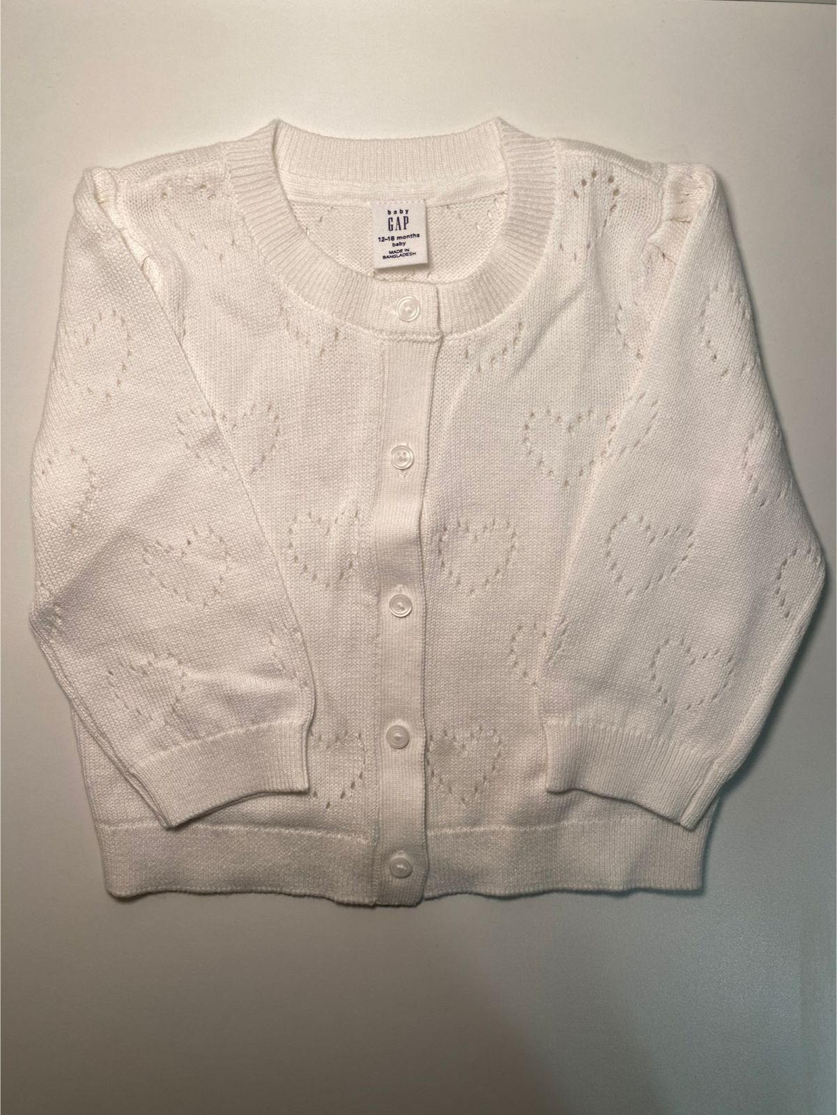 Casaco em tricot off white com detalhes vazados em formato de coração, trazendo um toque delicado e elegante.