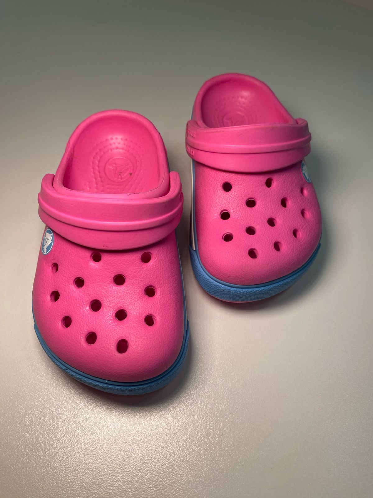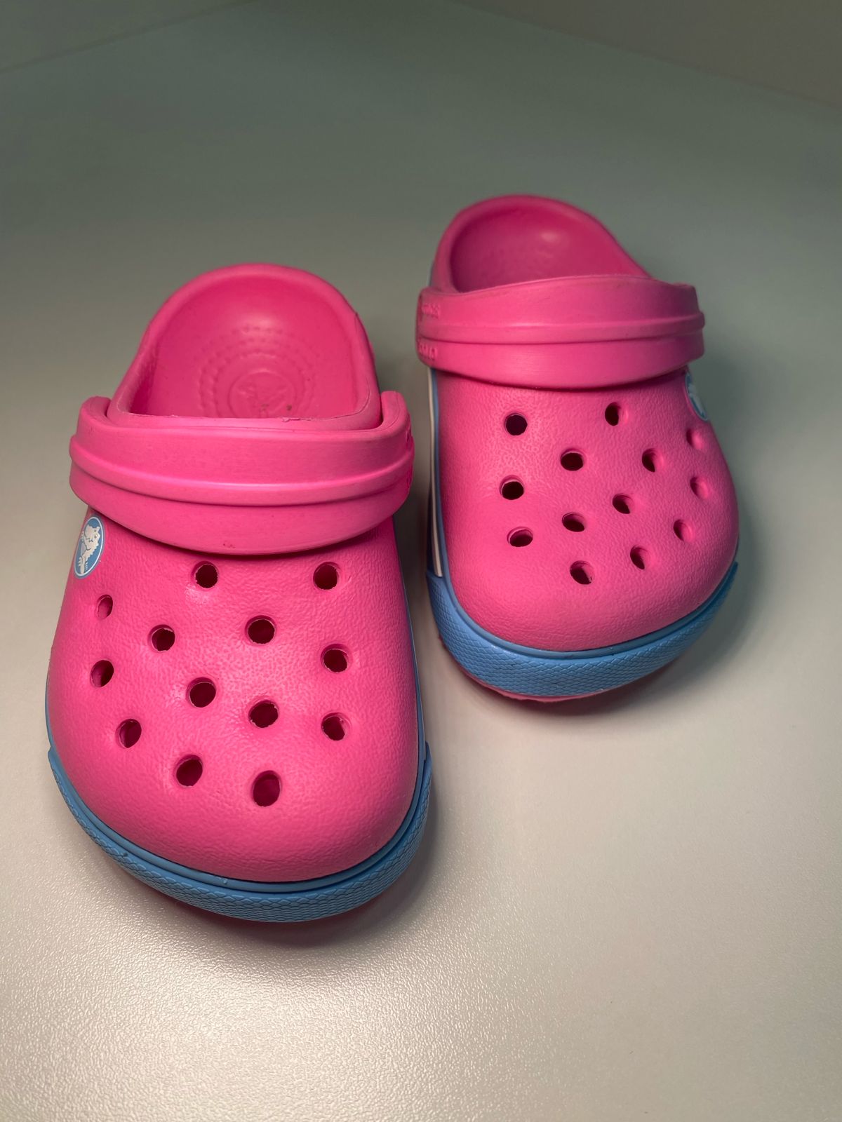 Crocs Rosa com detalhe em Azul, leve, confortável e super prático.