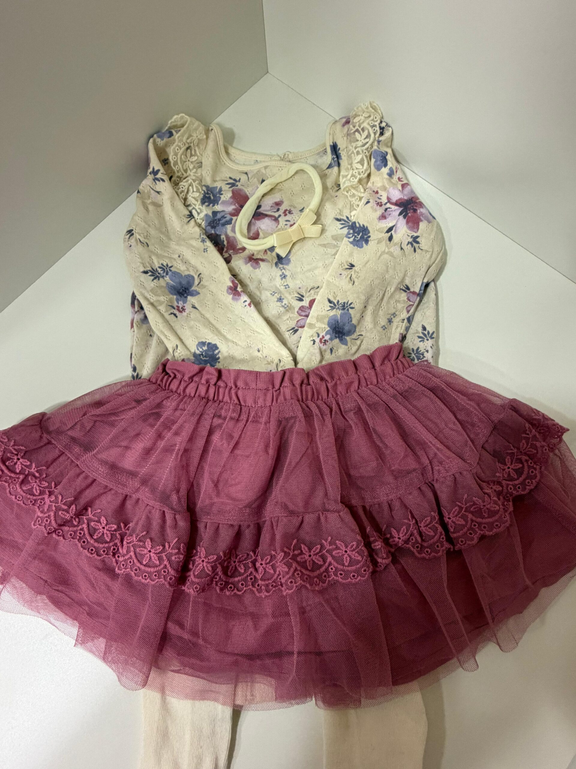 Material: body 100% algodão + meia 100% algodão + saia tule