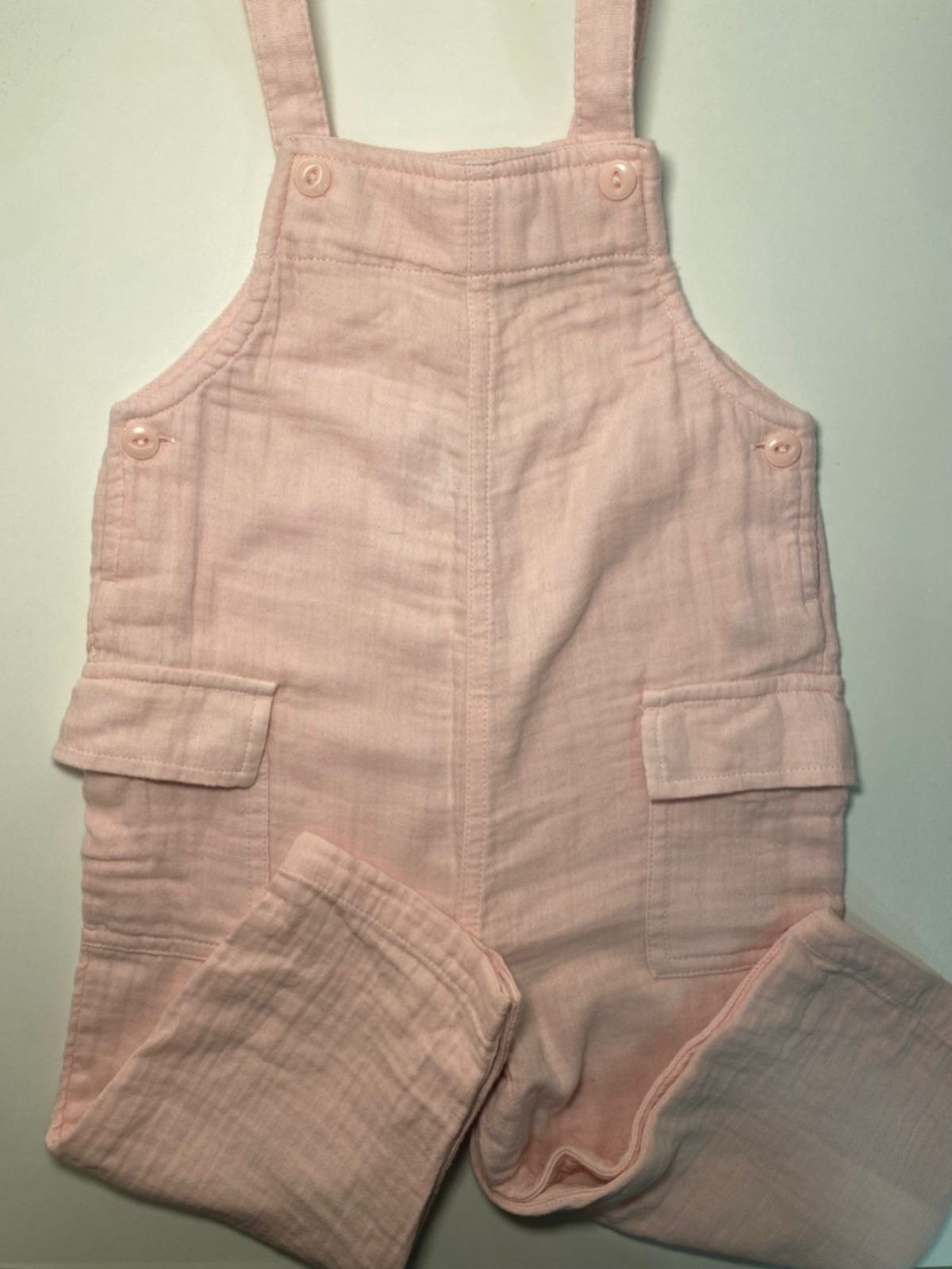 Jardineira em tom rosa claro, delicada e atemporal, perfeita para compor looks confortáveis e estilosos.