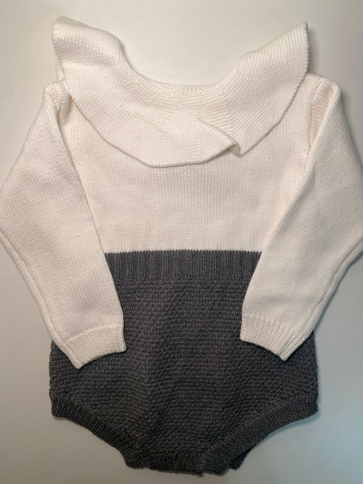 Conjunto em tricot com combinação de cores neutras, trazendo um visual elegante e moderno para as pequenas.