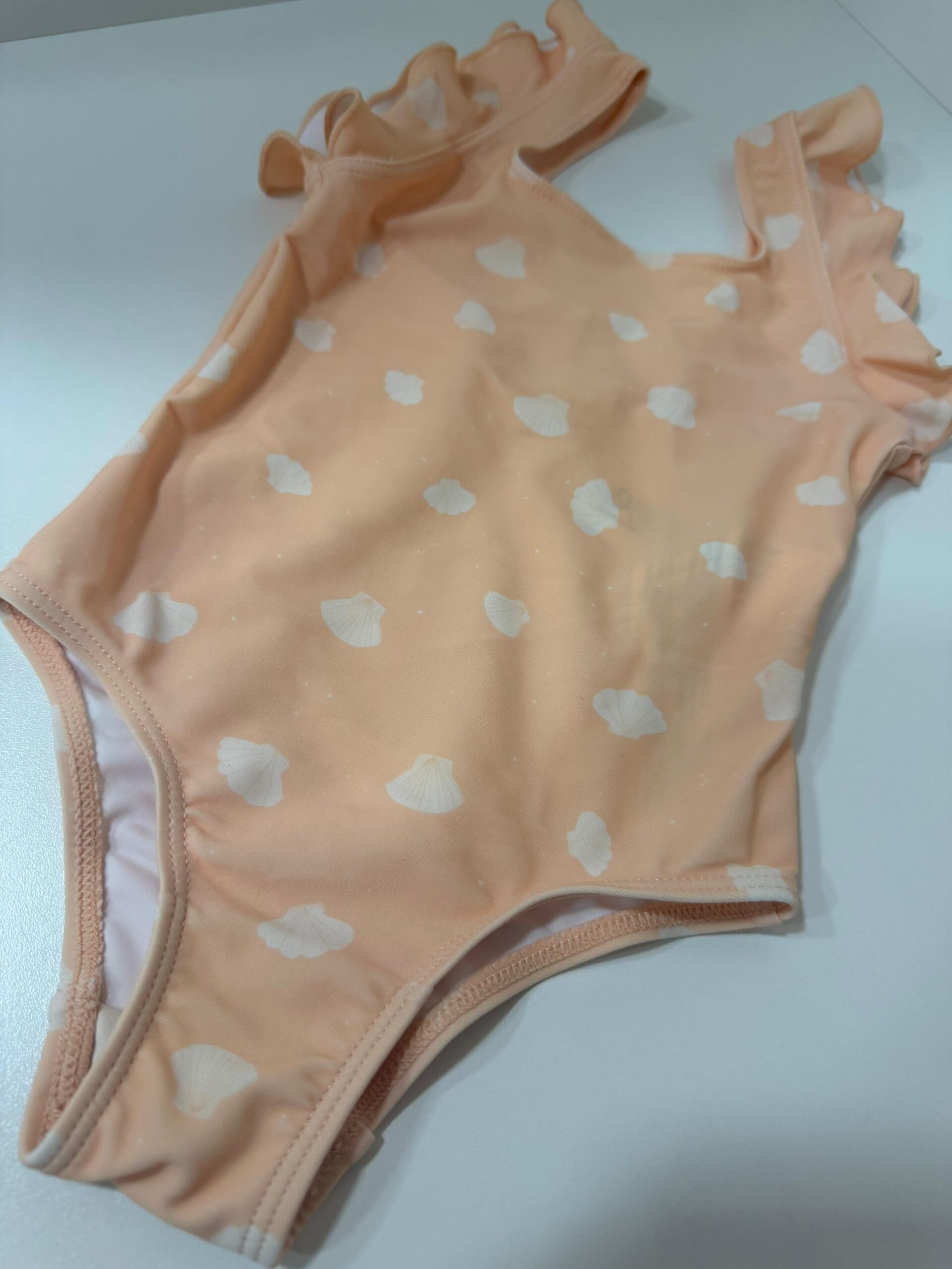 Maiô infantil pêssego com estampa de conchas (1 – 2 anos)
