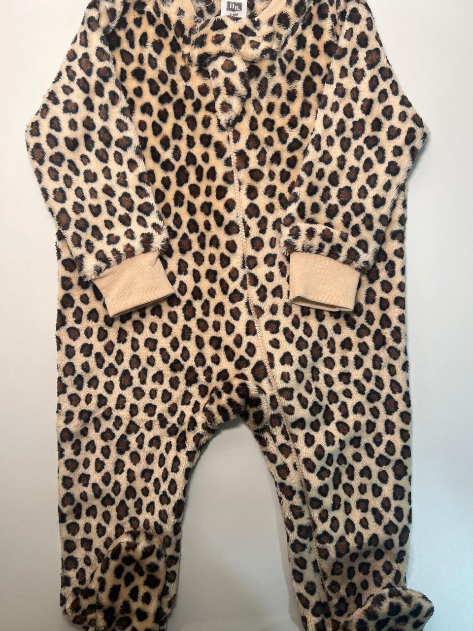 Macacão super quentinho em tecido plush com estampa animal print, perfeito para os dias mais frios.