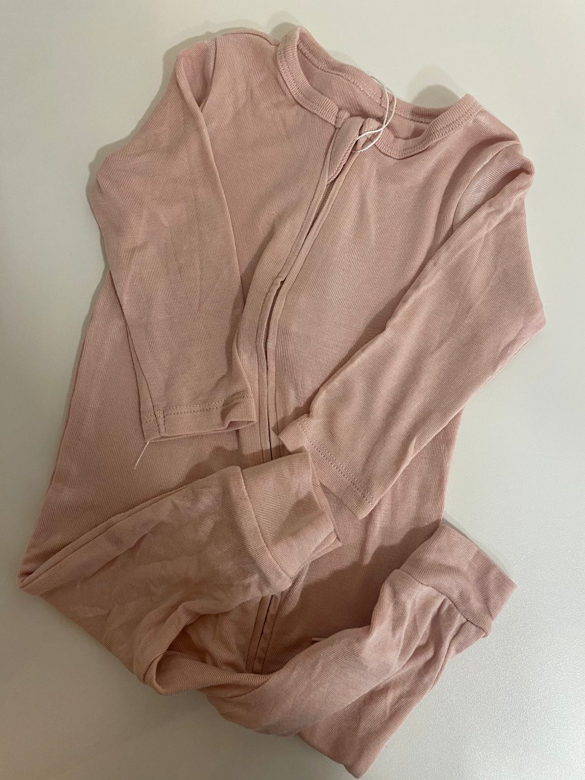 Confeccionado em tecido macio e confortável, possui zíper frontal que facilita na troca e modelagem que se ajusta ao corpo do bebê.