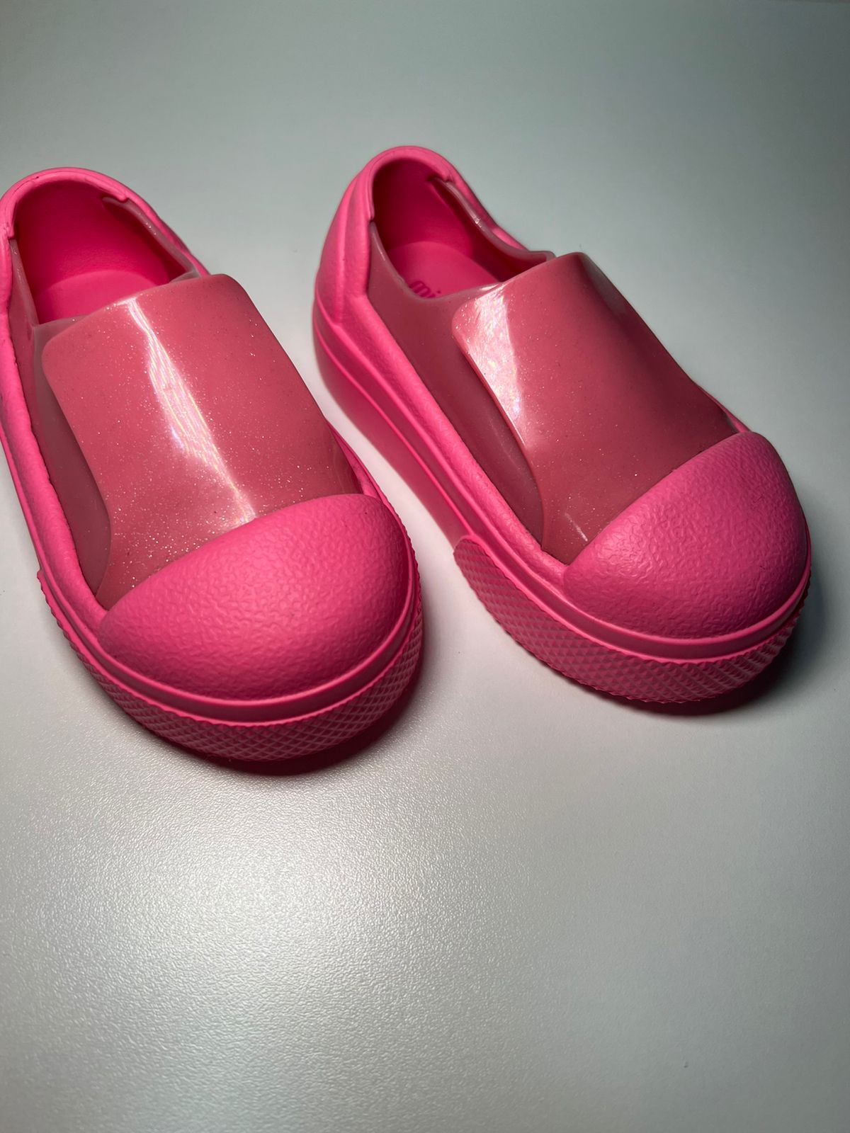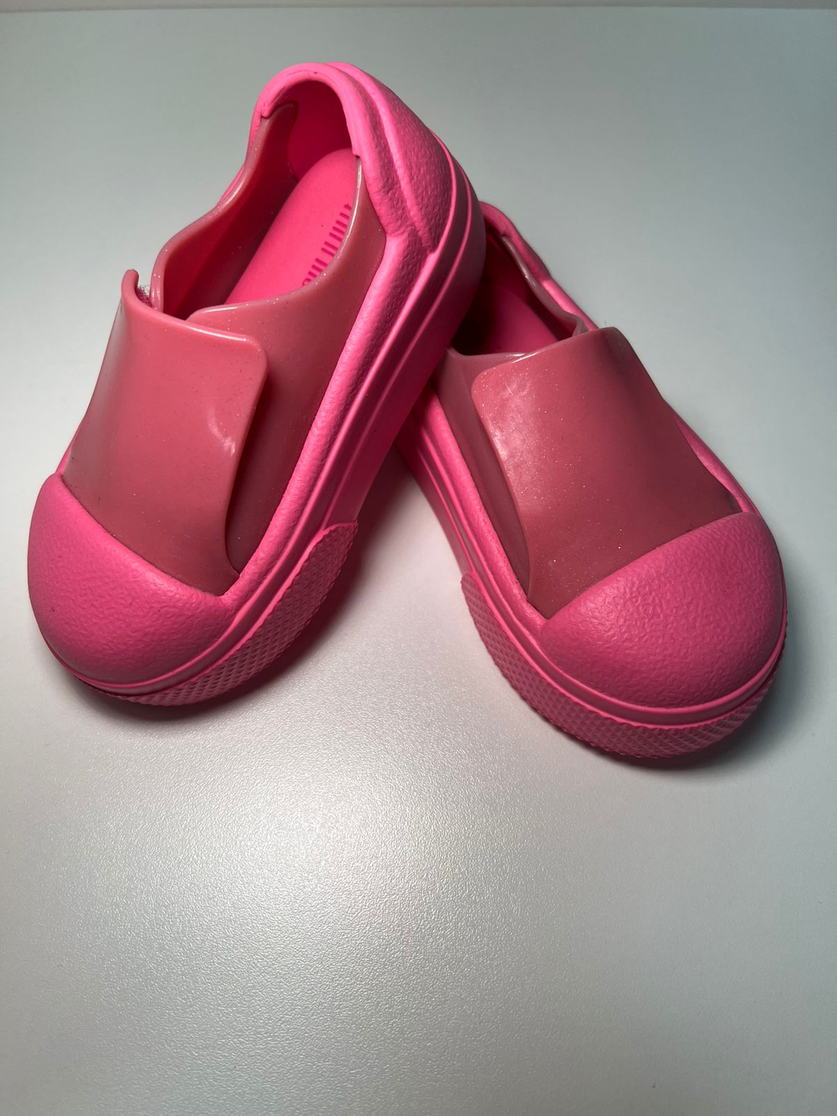 O modelo slip on facilita na hora de calçar, enquanto o acabamento em rosa com leve brilho traz um toque moderno e delicado.