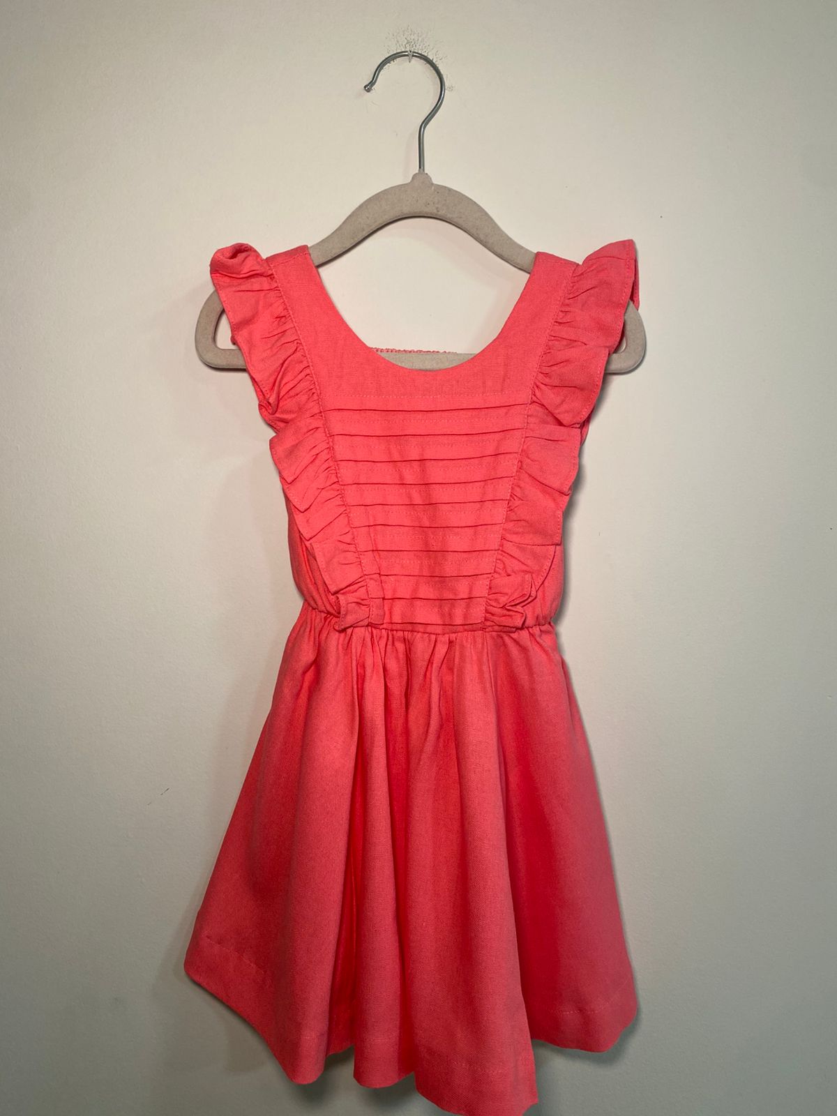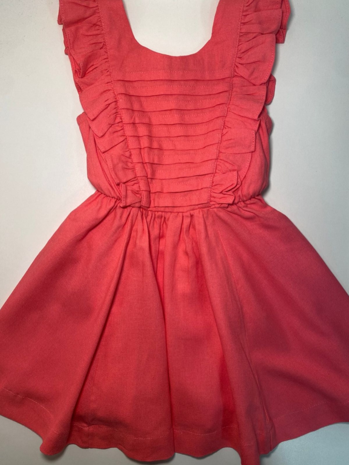 Vestido Coral com Babados e Detalhe em Pregas 🩷