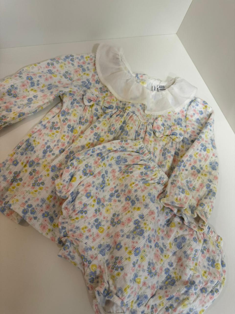 Vestido Infantil Floral com Gola e Calcinha