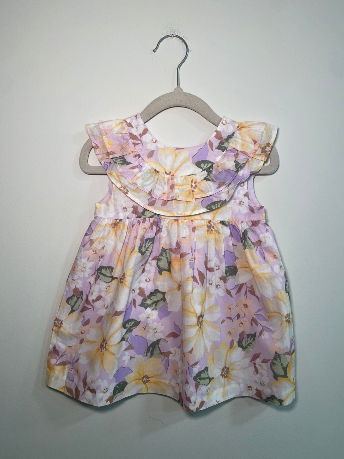 Vestido delicado em estampa floral em tons de lilás, com flores suaves que deixam o look ainda mais encantador.