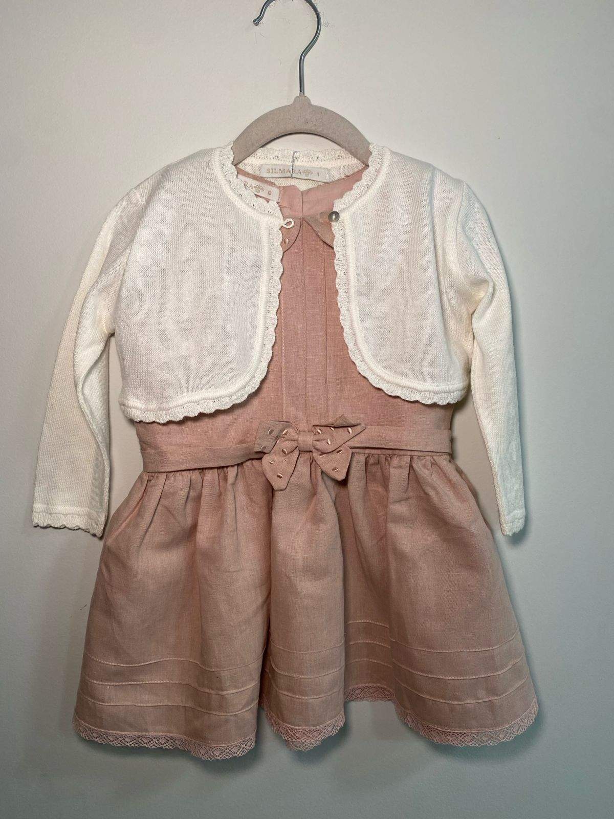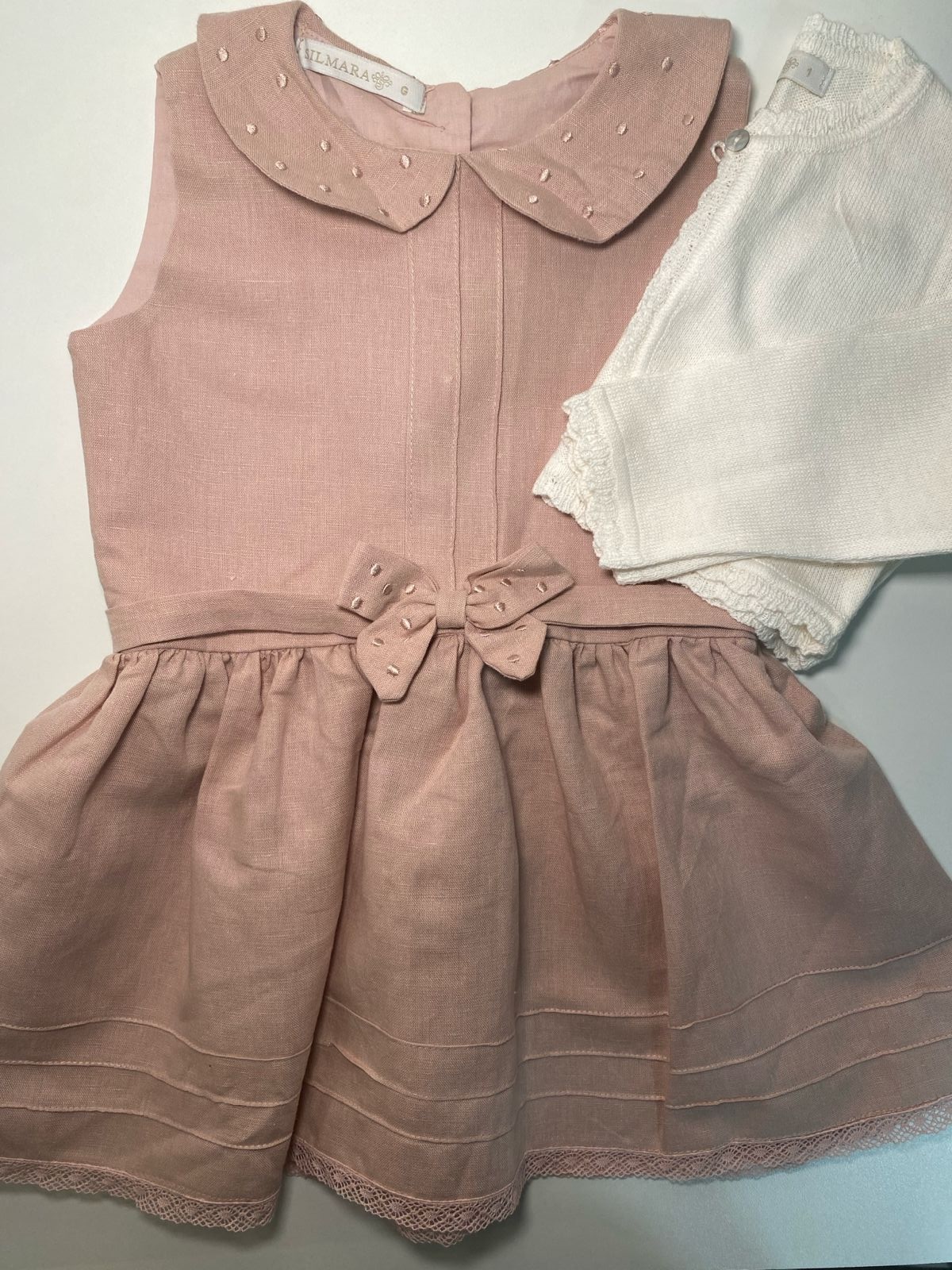 Vestido delicado em tecido leve na cor rosa, trazendo um toque clássico e elegante para as pequenas.